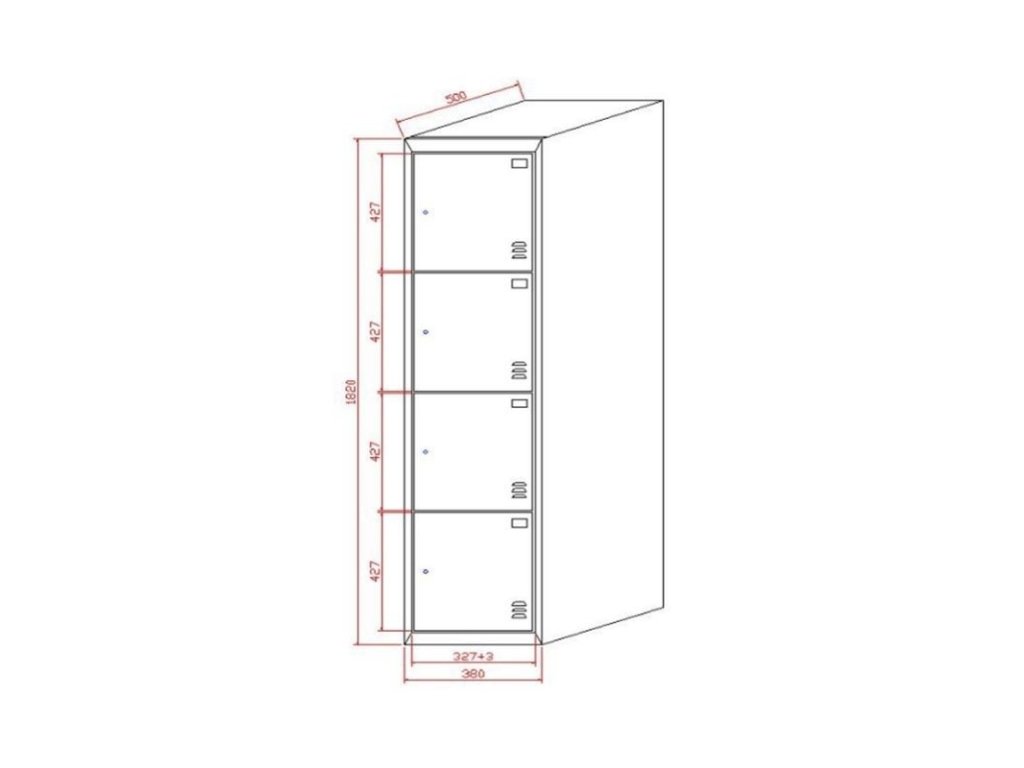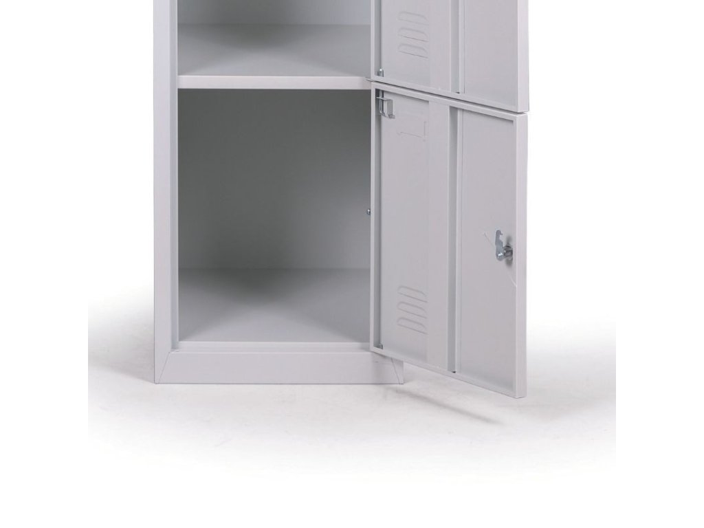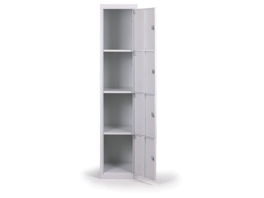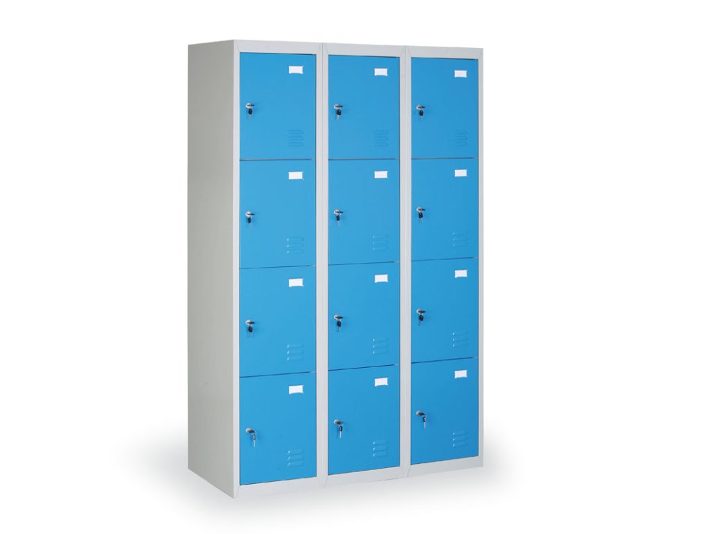 Skříňku s šířkou 380 mm tvoří 12 uzamykatelných boxů. Každý box poskytuje dostatek místa pro uložení osobních věcí, batohů či tašek. Toto úsporné a přitom bezpečné, uzamykatelné řešení je ideální všude tam, kde je potřeba šetřit místem a zároveň není nutné zavěšovat delší oděvy.