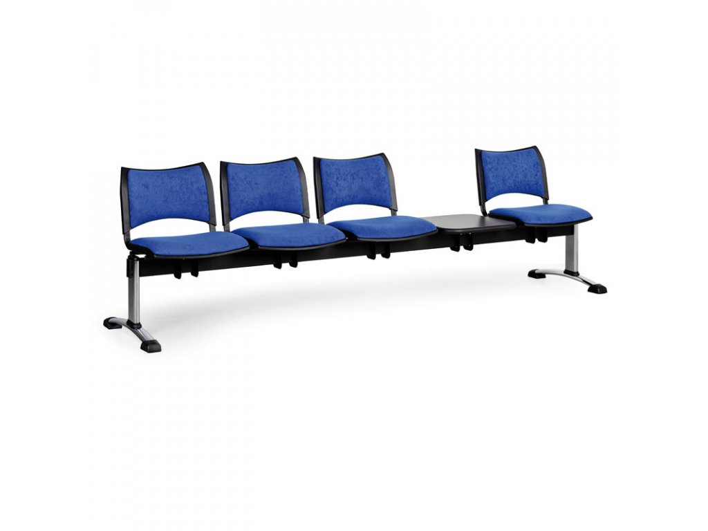 Čalouněná lavice do čekáren SMART, 4-sedák, se stolkem, modrá, chromované nohy