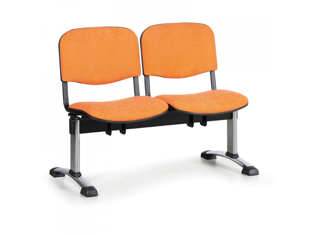 Čalouněná lavice do čekáren VIVA, 2-sedák, oranžová, chromované nohy