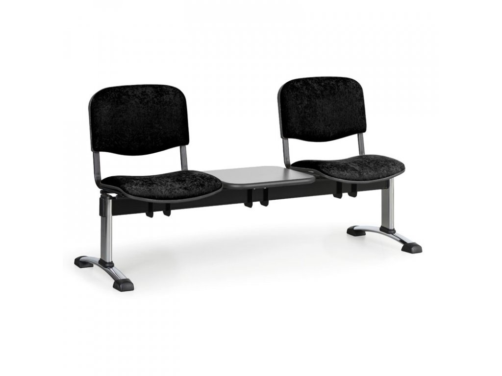 Čalouněná lavice do čekáren VIVA, 2-sedák, se stolkem, černá, chromované nohy