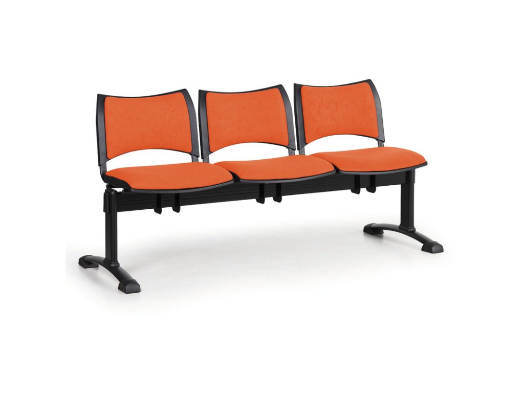 Čalouněné lavice do čekáren SMART, 3-sedák, oranžová, černé nohy