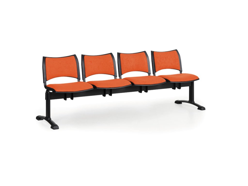Čalouněné lavice do čekáren SMART, 4-sedák, oranžová, černé nohy