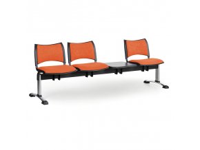 Čalouněné lavice do čekáren SMART, 3-sedák, se stolkem, oranžová, chromované nohy – Skladem10 790 Kč