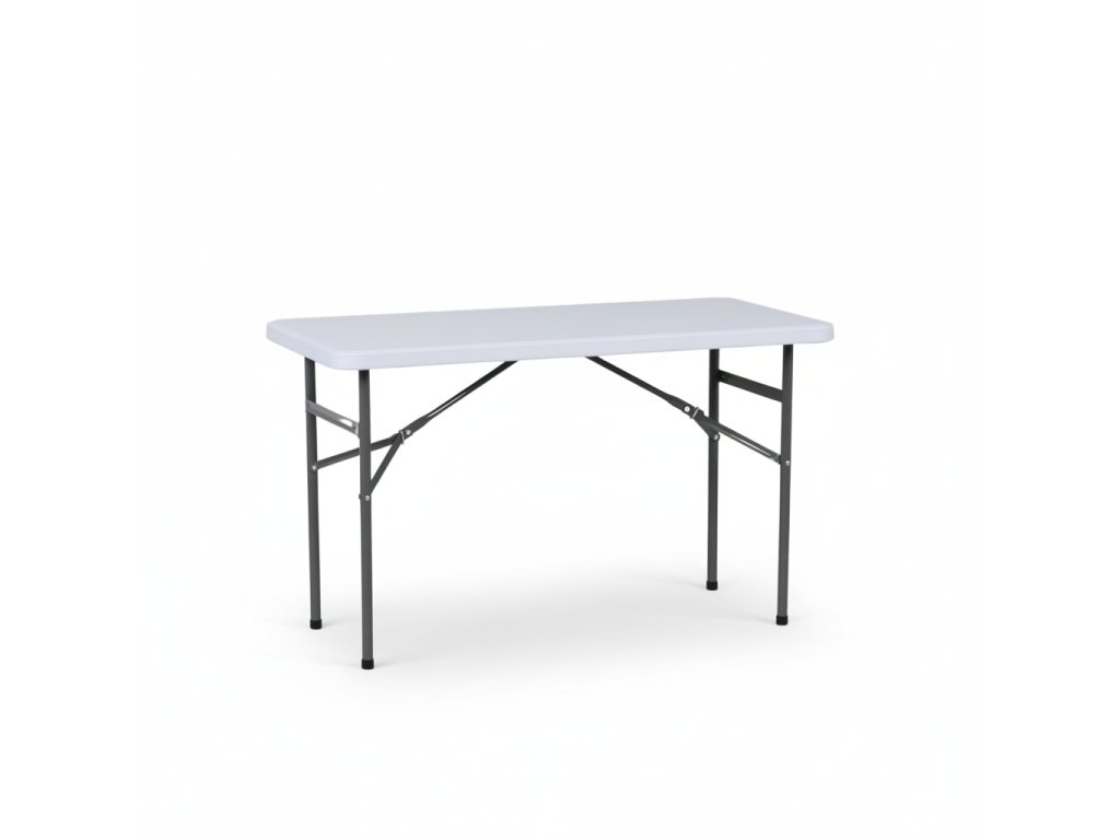 Odolný skládací cateringový stůl s robustní kovovou podnoží a lehkou plastovou deskou je ideální pro catering, oslavy, bankety i firemní akce. Díky skládací konstrukci se snadno rozloží i složí, přičemž po složení zabírá minimum místa. Deska s perforací ze spodní strany umožňuje elegantní ukrytí skládacího mechanismu a zajišťuje maximální stabilitu i dlouhou životnost při každodenním používání.