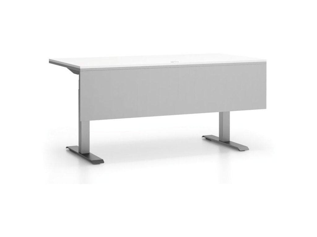 Čelní krycí deska slouží jako doplněk k psacím stolům SINGLE. Lze využít jako skvělá spodní zástěna ke stolu, která přináší do Vaší kanceláře potřebný kousek soukromí v dolní části. Skryje navíc i kabely táhnoucí se těsně pod stolovou deskou. Vhodným řešením je například také v případě open space kanceláří.