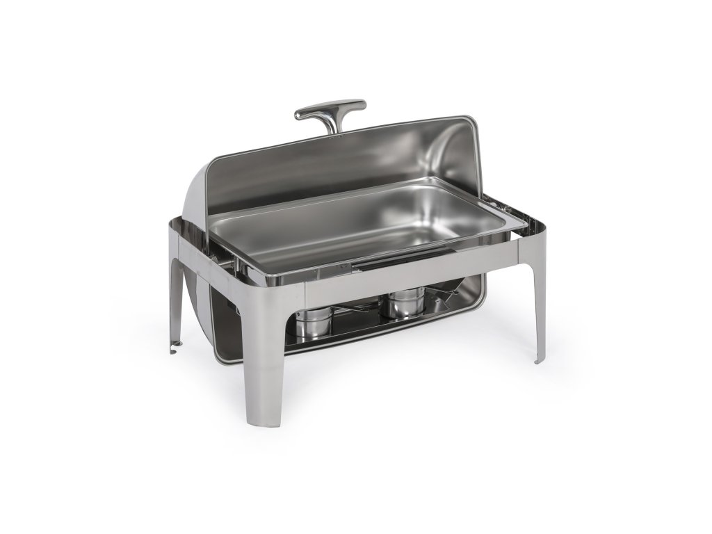 Chafing se zasouvacím roll top víkem slouží k podávání teplého jídla a udržování pokrmů při požadované teplotě. Chafing můžete využít jak při rautech uvnitř budovy, nebo třeba také pro catering na zahradní párty, oslavách a dalších událostech. Tento model je vyroben z vysoce kvalitního nerezového kovu, který zaručuje nejen dlouhou životnost, ale především reprezentativní a profesionální vzhled, ať už jídlo budete servírovat kdekoli.