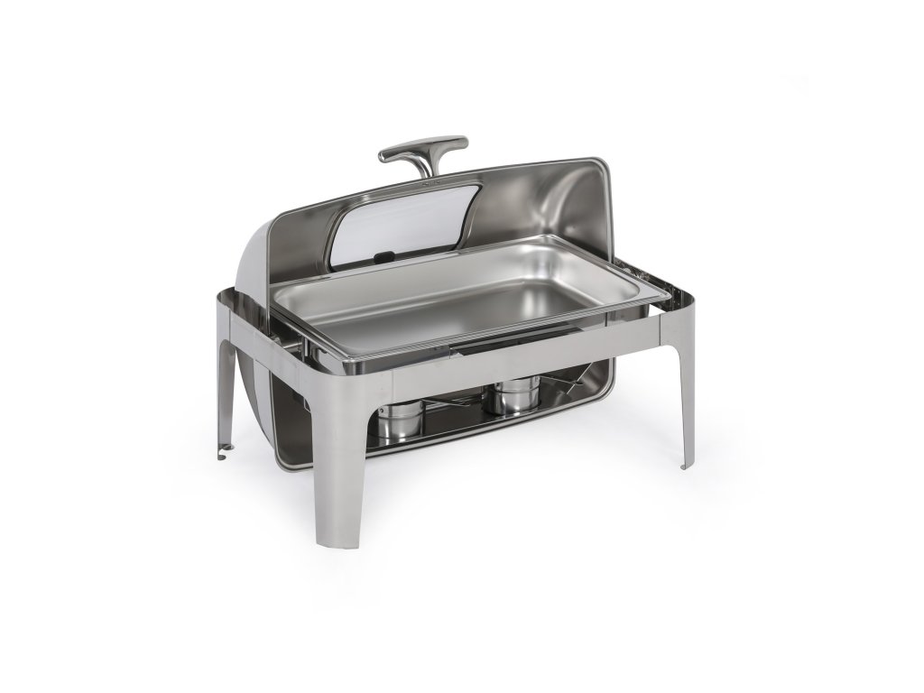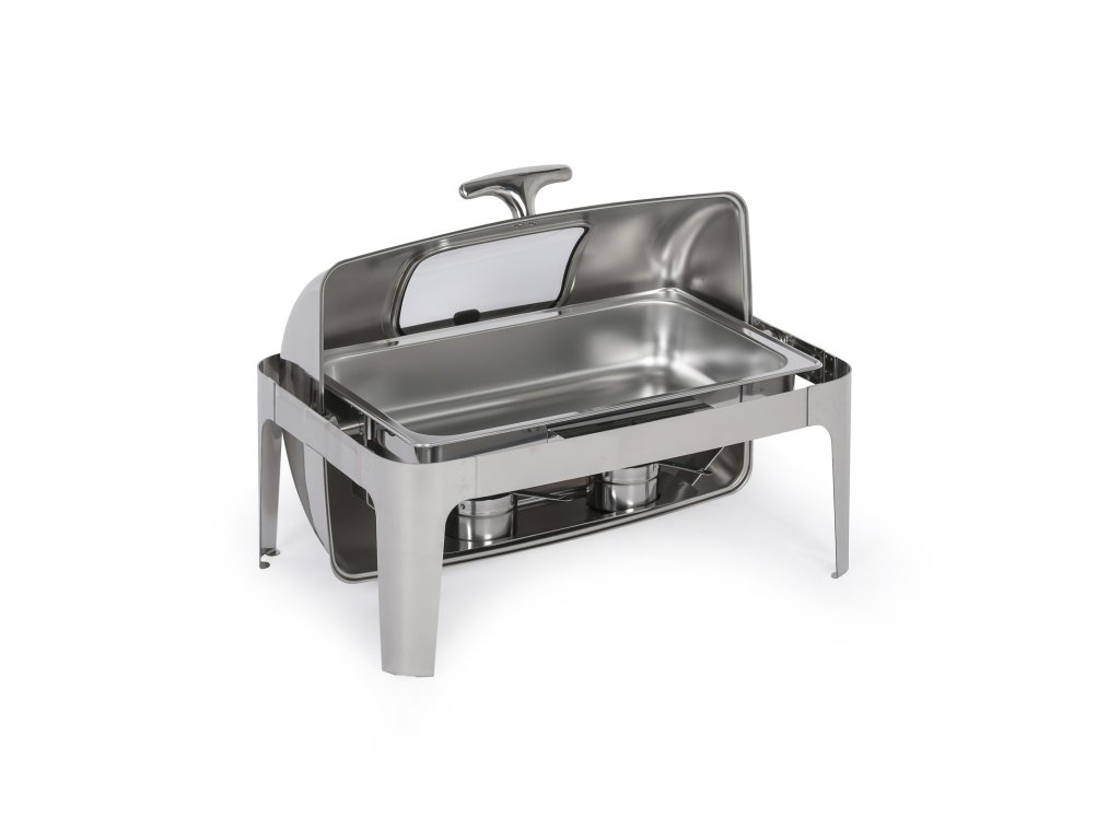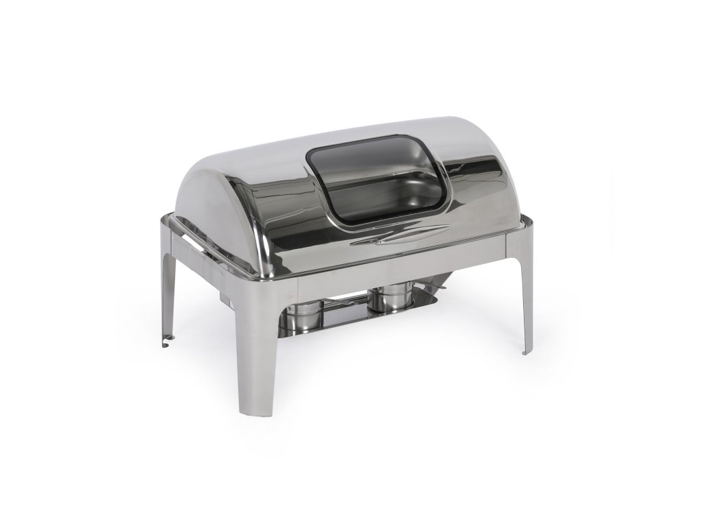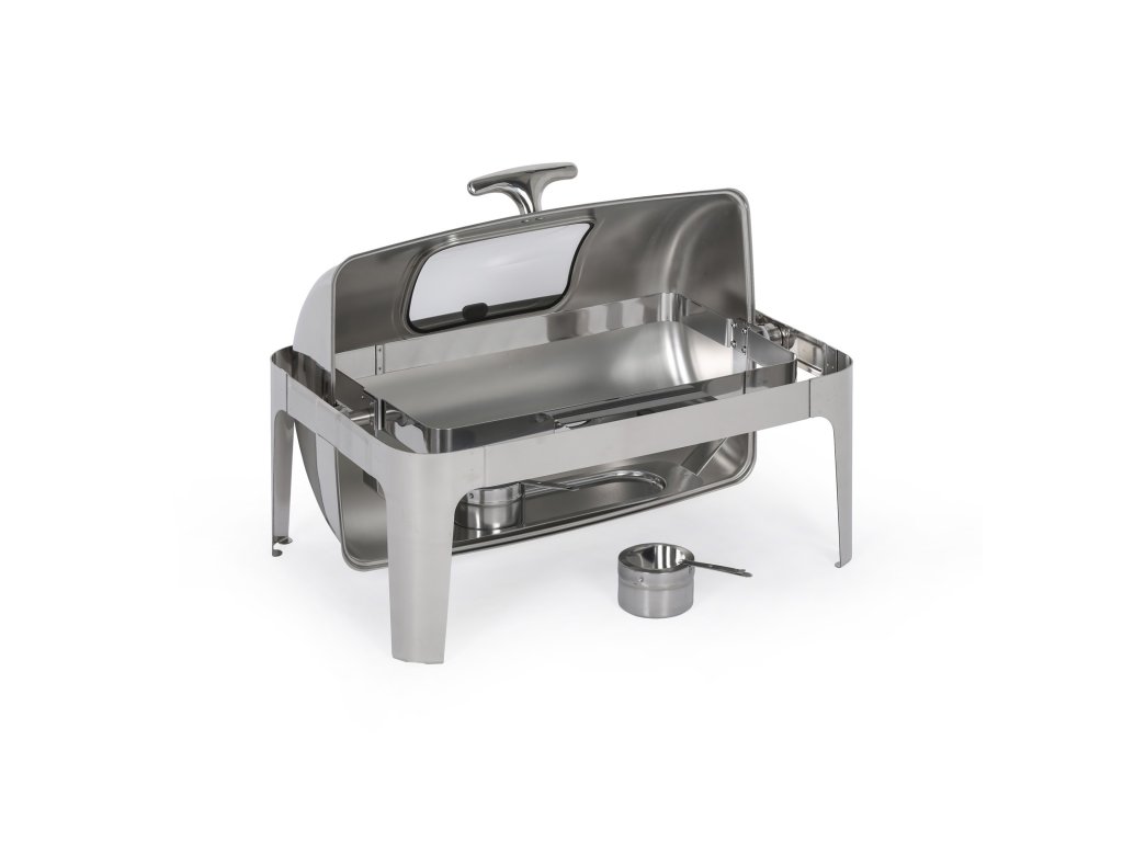 Chafing se zasouvacím roll top víkem slouží k podávání teplého jídla a udržování pokrmů při požadované teplotě. Chafing můžete využít jak při rautech uvnitř budovy, nebo třeba také pro catering na zahradní párty, oslavách a dalších událostech. Tento model je vyroben z vysoce kvalitního nerezového kovu, který zaručuje nejen dlouhou životnost, ale především reprezentativní a profesionální vzhled, ať už jídlo budete servírovat kdekoli.