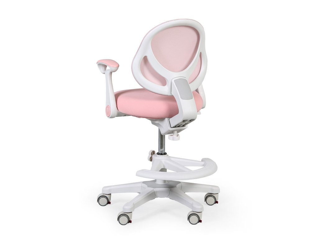 Tato dětská židle je vybavena integrovanou opěrou pro nohy. Tu lze dle potřeby výškově nastavit v rozmezí 16–25.5 cm, případně jí můžete zcela odejmout. Celková šířka opěry nohou činí 45 cm a hloubka dosedací plochy podnožky je 6 cm.