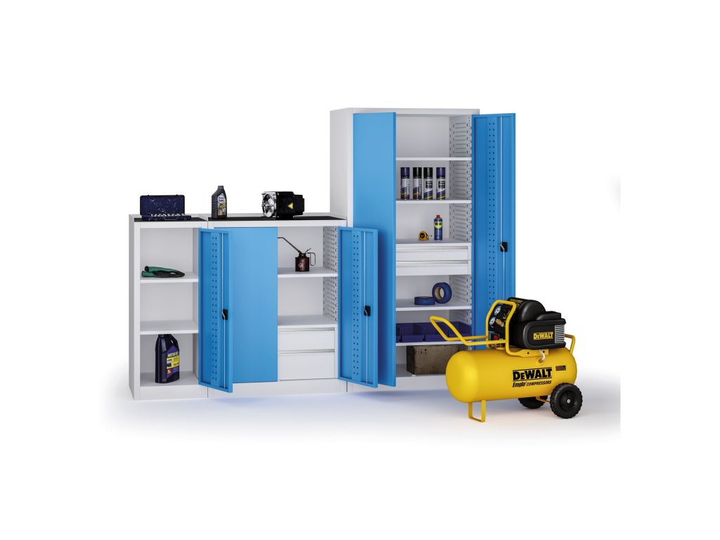 - Dveře s perforovanou výztuhou - Tloušťka plechu dveří 1mm, vnitřní perforace pro zavěšení držáků nářadí
