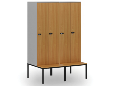 Základnu tvoří kovová lavička vysoká 373 mm s laminovaným sedákem (hloubka 300 mm). Umožňuje pohodlné sezení i převlékání přímo u skříňky a šetří místo, které by jinak zabrala samostatná lavice.