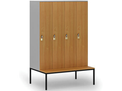 Dřevěná šatní skříňka S4 s lavičkou, 4 oddíly, 1871 x 1200 x 500/800 mm, demont, otočný zámek, šedá/grafit
