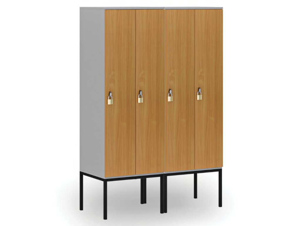 Celodřevěná šatní skříňka vnáší do prostoru příjemný a reprezentativní vzhled. Oproti kovovým skříňkám lépe zapadne do interiérů a zaměstnaneckých zázemí, kde hraje svou roli nejen funkčnost, ale i estetika. Skříňka je vyrobena z laminované dřevotřísky (18 mm), která je olepena po celém obvodu 1 mm ABS hranou. Povrch skříňky je snadno omyvatelný.