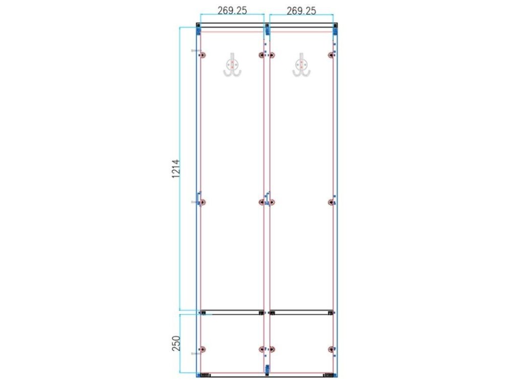 - 4 oddíly, šířka oddílu 300 mm, výška oddílu 1500 mm, vnitřní rozměr 1 oddílu: 1464 x 269 (mm)