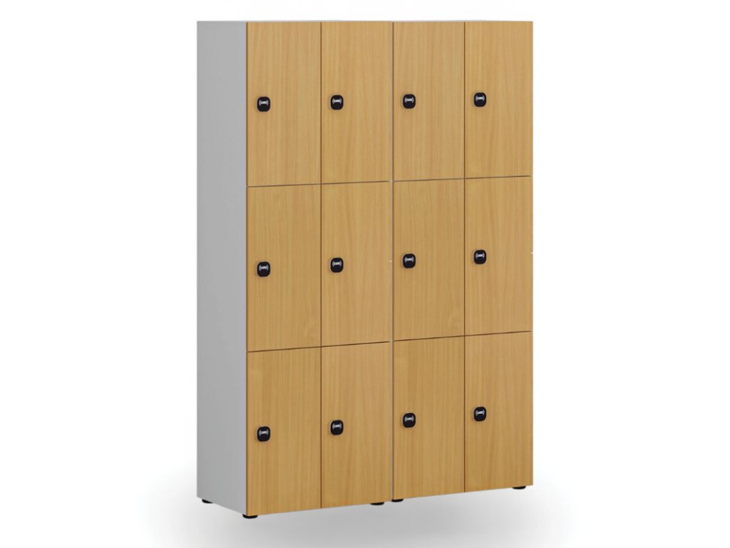 Dřevěná šatní skříňka S4 s úložnými boxy, 6 boxů, demont, RFID zámek, šedá/buk