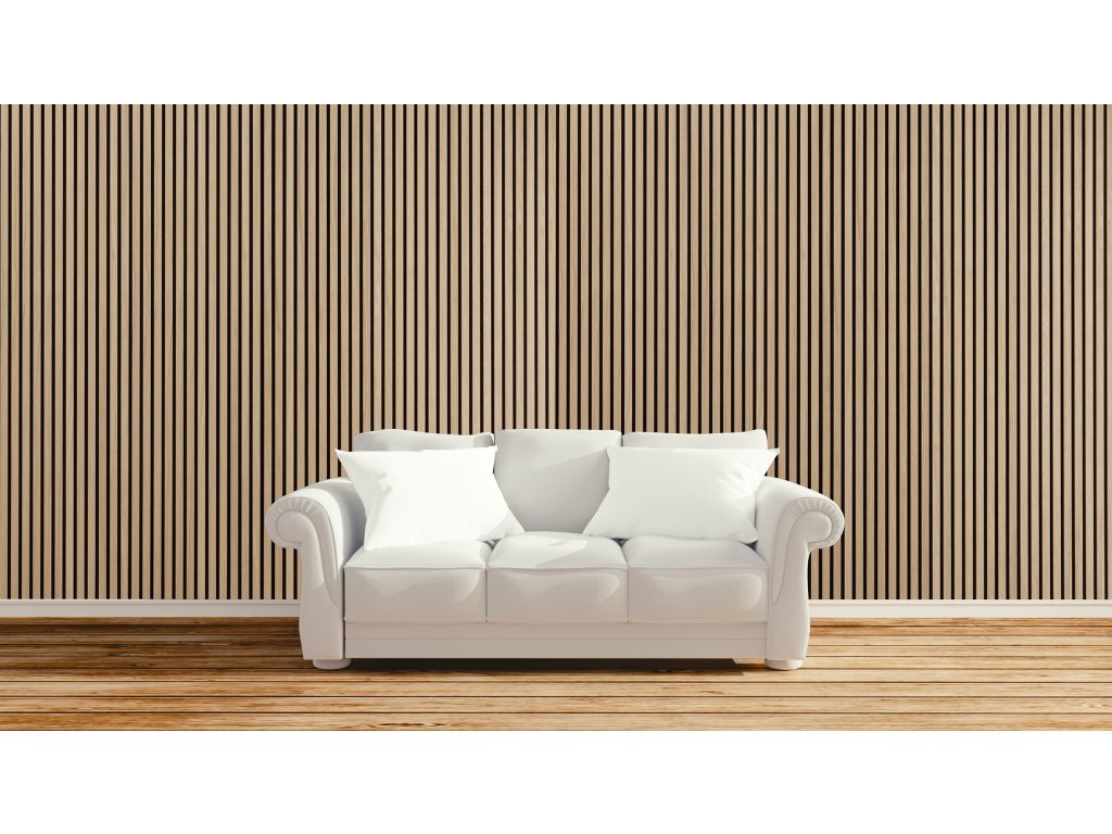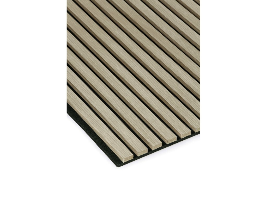 Aby akustické panely skvěle zapadly do moderních interiérů, ve kterých je kladen důraz na design a estetiku, je 9 mm hrubý polyesterový panel obložen 27 mm širokými a 12 mm hrubými MDF lamelami a rozestup mezi nimi činí 13 mm.