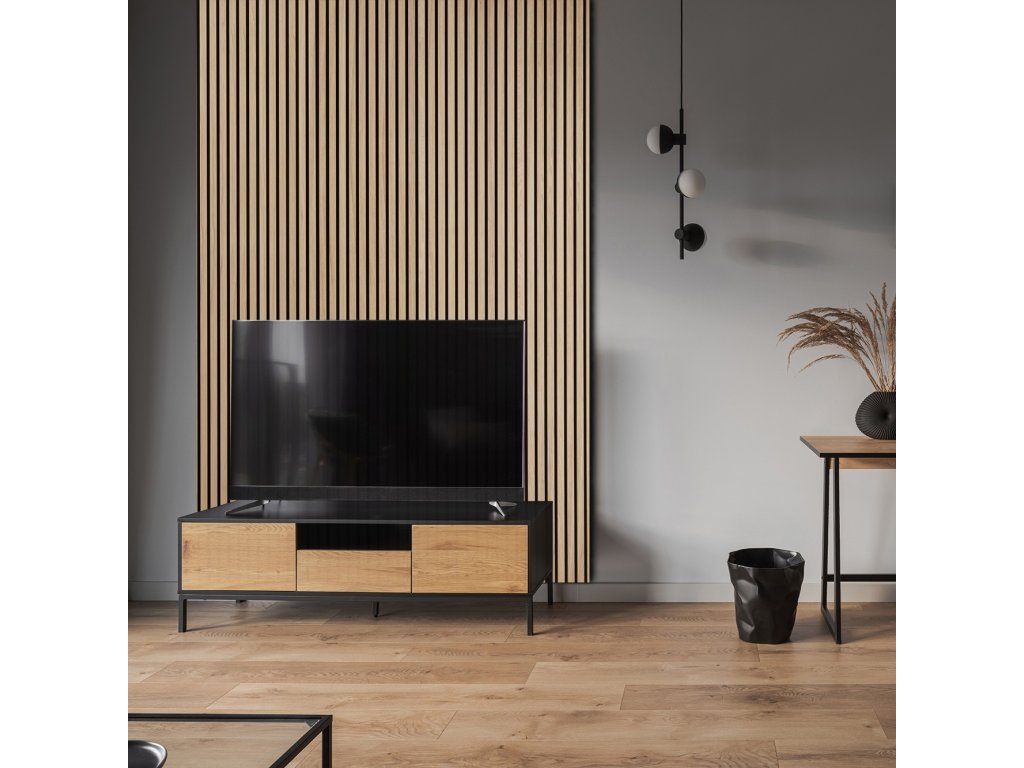 Dřevěný akustický panel, 2400 x 600 mm, černý podklad, dub mořený