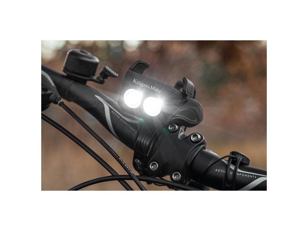 Držák na kolo HS-XT50 je zároveň i powerbankou s kapacitou 2000 mAh. Powerbankou můžete přes kabel nabíjet Váš mobil i za jízdy. Dvojice žárovek s příkonem 5 W svítí sílou 400 lm. Budete tak mít dostatek světla i na noční projížďky. Tlačítkem, které si můžete nainstalovat kamkoli na řídítka na kole, koloběžce, motorce (skútru) nebo na kočárku, na sebe můžete upozornit i z větší vzdálenosti pomocí klaksonu o síle 130 Db. Také můžete změnit zvuk pomocí 4s podržení tlačítka klaksonu z 5ti možností.