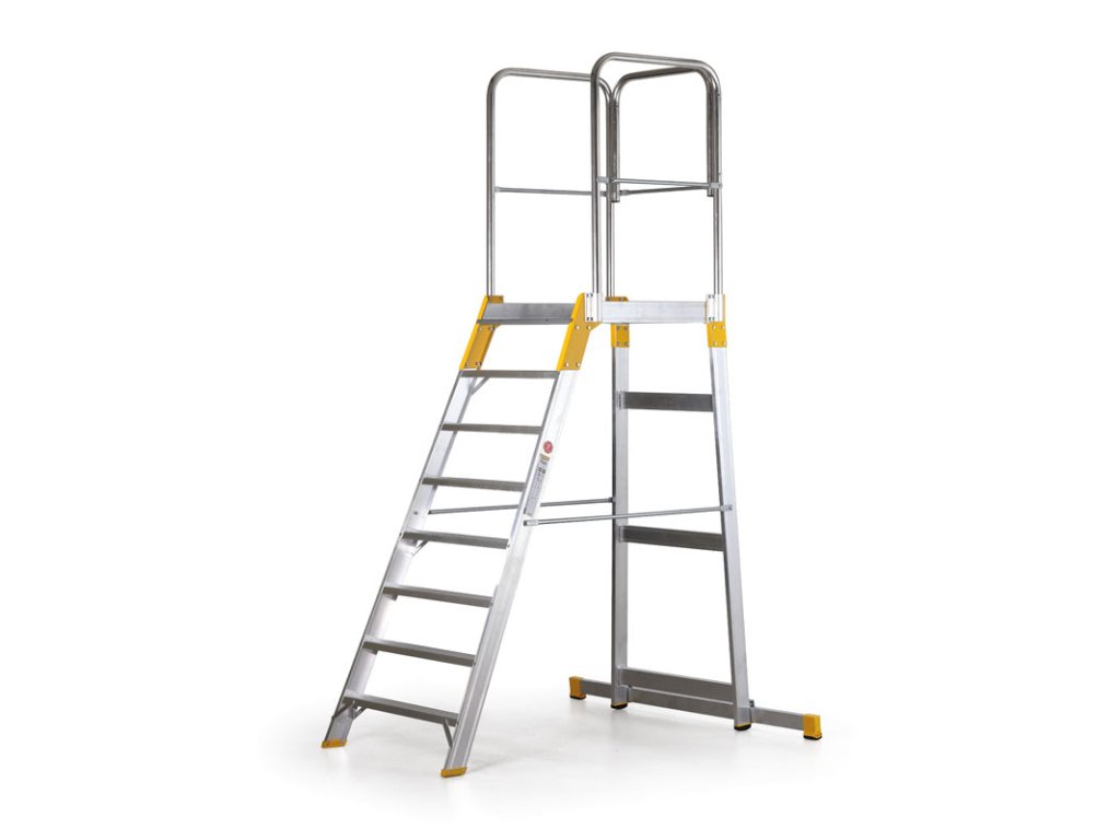 Hliníkový můstek, žebřík s plošinou, jednostranný ALVE FORTE, 8 příček, výška 1,68 m