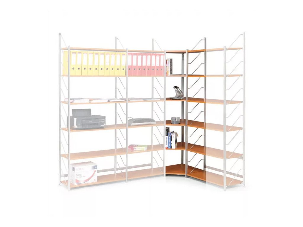 Interiérový regál s laminovanými policemi, rohový, buk