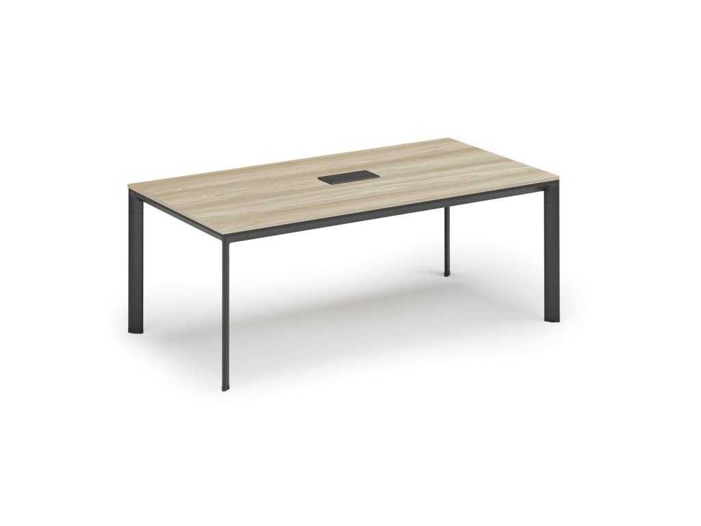 Jednací stůl PRIMO INVITATION, 200x100 cm, dub přírodní + stolní zásuvka TYP III, černá