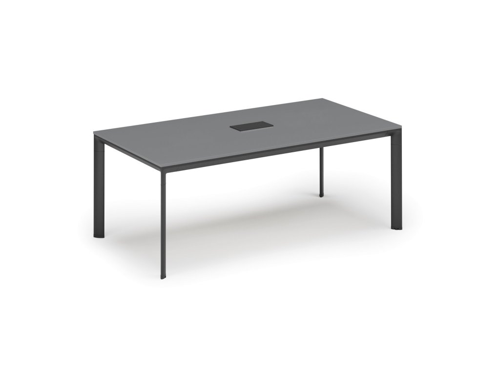 Jednací stůl PRIMO INVITATION, 200x100 cm, grafit + stolní zásuvka TYP III, černá