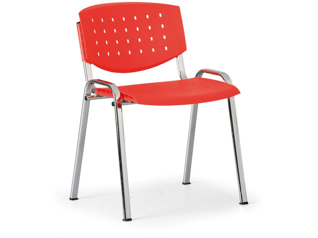 Sedák i opěrák této židle jsou vyrobeny z odolného plastu. Díky tomu se židle velice snadno čistí. Plastové provedení zaručuje nízkou hmotnost, odolnost a především dostupnou pořizovací cenu. Plastové židle se hodí nejen do zasedacích a konferenčních místností, ale pro svou snadnou údržbu, lehké přenášení své místo nachází také v jídelnách, bufetech a dalších stravovacích provozech.