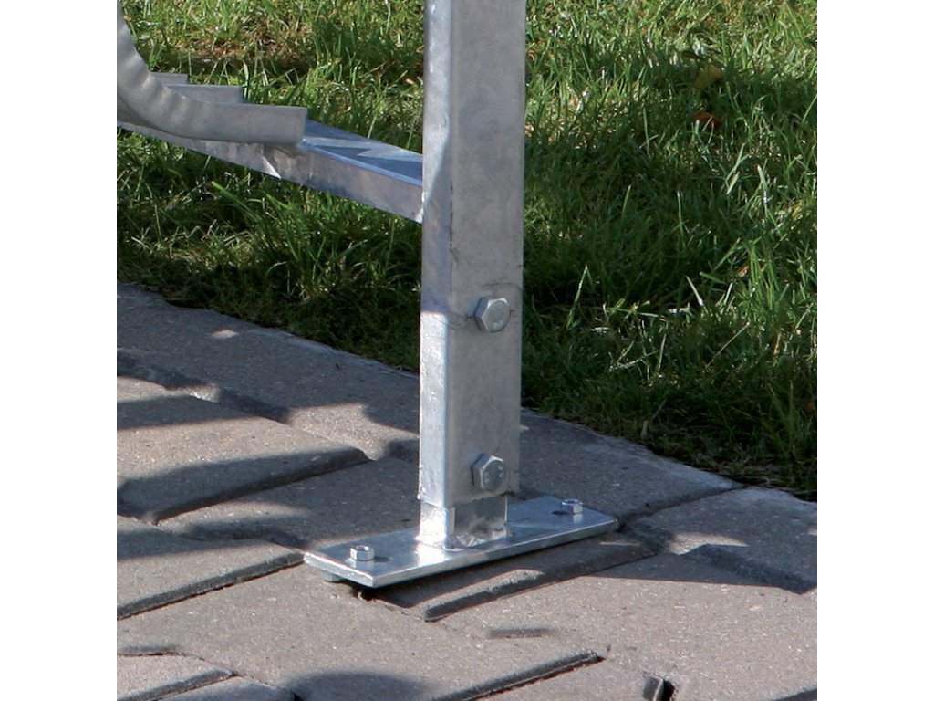 Pro upevnění stojanu jsou v balení dle varianty produktu buď koncovky k zabetonování, nebo materiál potřebný pro ukotvení k zemi, což vám usnadní práci při instalaci stojanu. Pevné ukotvení pak minimalizuje riziko krádeže či poškození jízdních kol. Celková hmotnost stojanu je 14 kg.