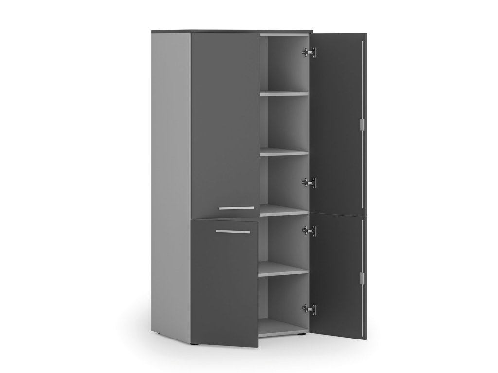 Kancelářské skříně PRIMO GRAY díky své vysoké odolnosti, bezpečnosti a modernímu designu nachází uplatnění zejména ve sdílených kancelářích, soukromých pracovnách a na úřadech. Můžete vybírat z variant s křídlovými, zasouvacími i kombinovanými dveřmi či ve variantě se zásuvkami na závěsné složky. Pro úschovu dokumentů přímo u stolu lze využít i praktické nízké skříňky a komody. Šatní skříně naopak poskytnou dodatečný prostor pro uložení všech vašich oděvů i kancelářských potřeb.