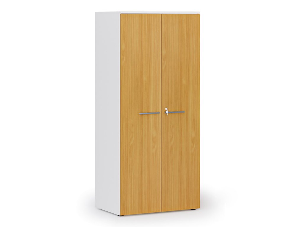 Kancelářská policová skříň PRIMO WHITE s dveřmi, 800 x 500 x 1781 mm, bílá/buk