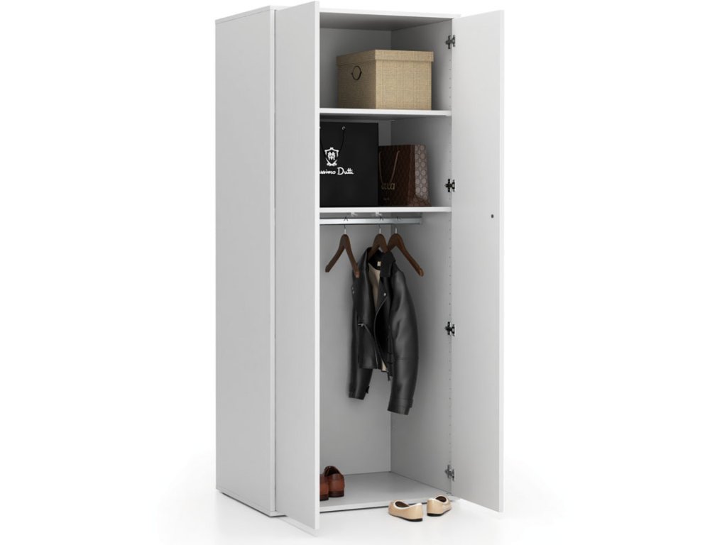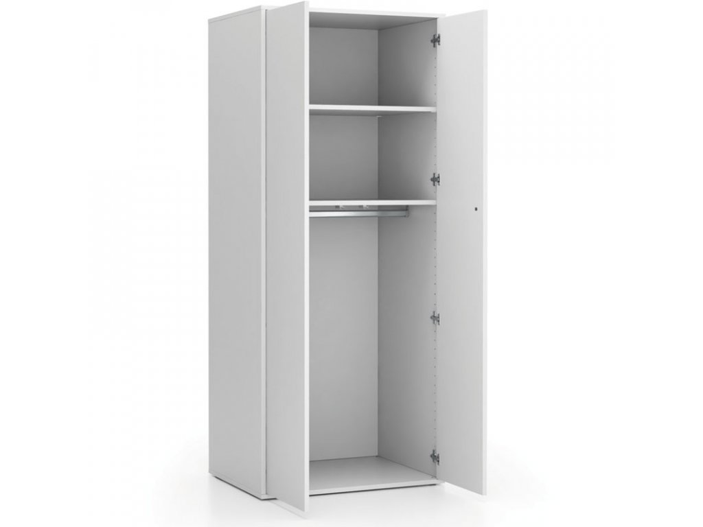 Kancelářská šatní skříň s šatní tyčí LAYERS je vhodná pro ukládání oblečení či obuvi v kanceláři, popřípadě i nevyužívaných kancelářských potřeb. K dispozici máte celkem 2 úložné oddíly, doplněné o šatní tyč, umístěnou ve spodní části, na kterou můžete zavěsit bundy, kabáty či sako. Do spodní části můžete umístit svou venkovní obuv.