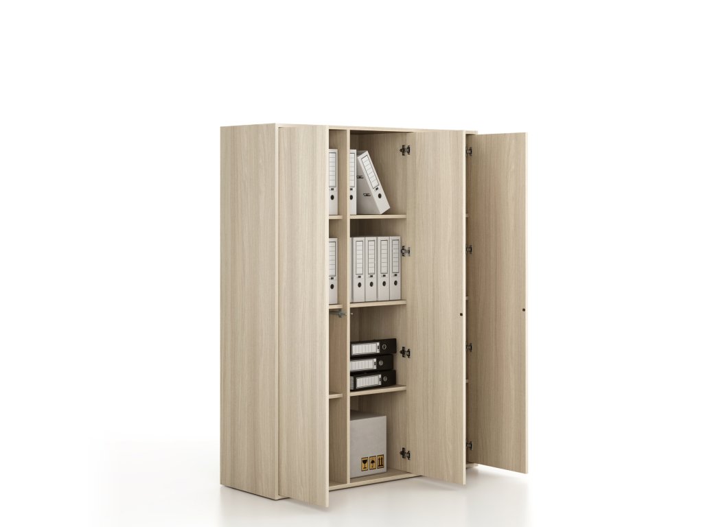 Kancelářská skříň FRAME, 3x dveře, 1299 x 450 x 1735 mm, PUSH-lock, dub přírodní