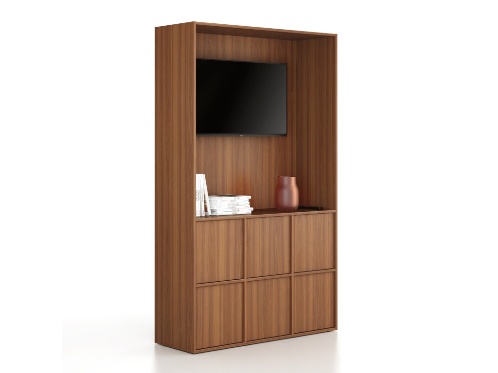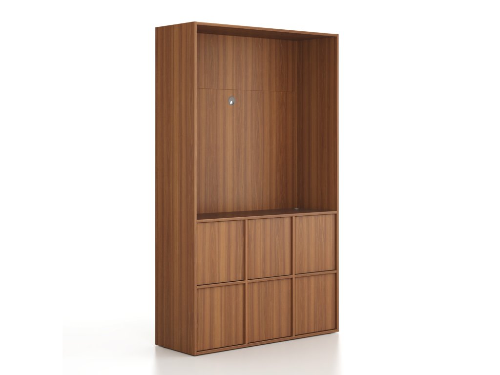 Kancelářská skříň FRAME, 6x dveře, prostor pro TV, 1299 x 450 x 2162 mm, PUSH-lock, ořech