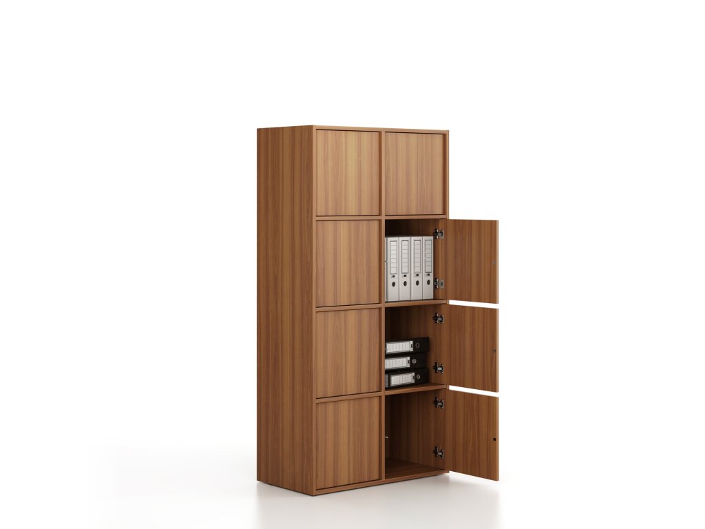 Kancelářská skříň FRAME, 8x dveře, 872 x 450 x 1735 mm, PUSH-lock, ořech