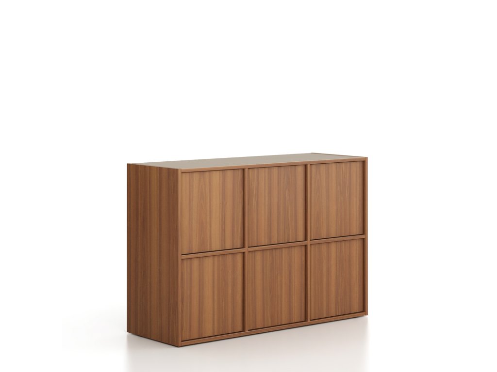 Kancelářská skříň FRAME, nízká, 6x dveře, 1299 x 450 x 881 mm, PUSH-lock, ořech