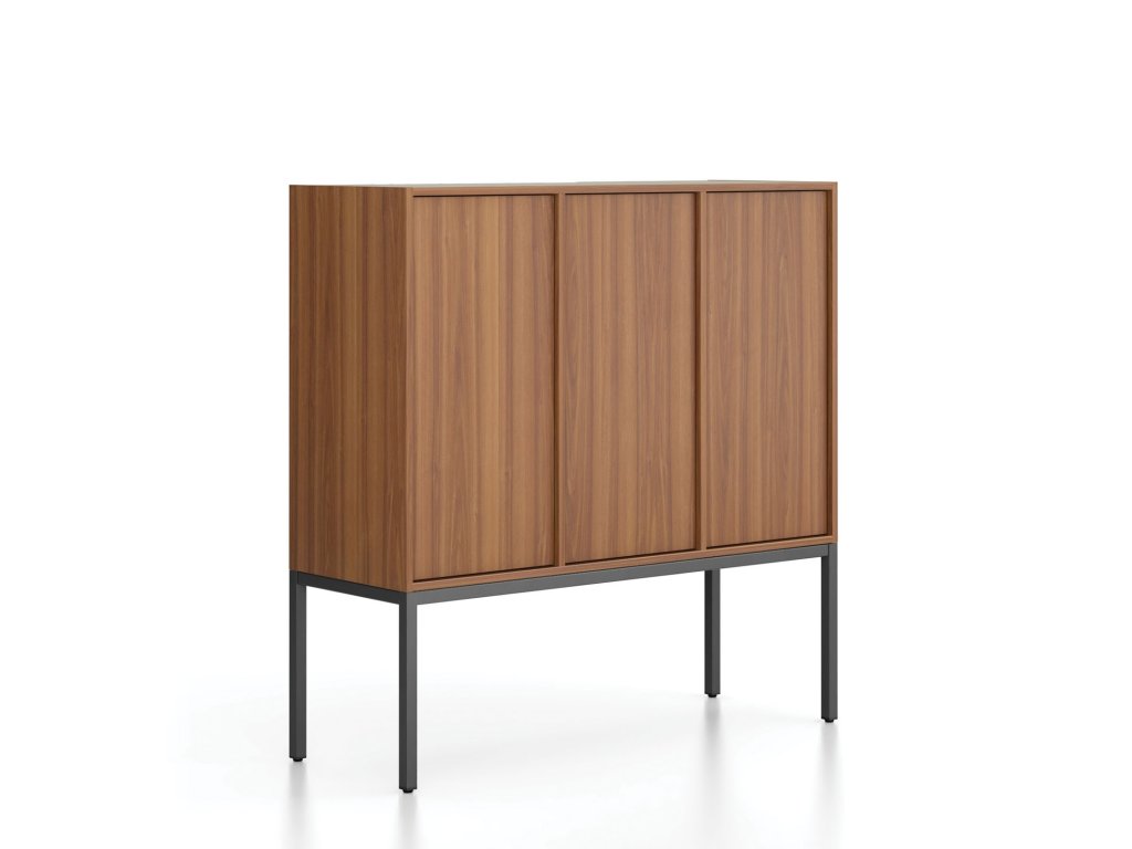 Kancelářská skříň FRAME, nízká, černá podnož, 3x dveře, 1299 x 450 x 1331 mm, PUSH-lock, ořech