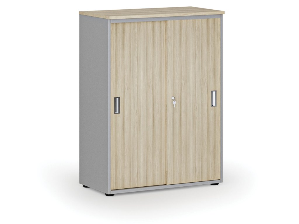 Kancelářská skříň se zasouvacími dveřmi PRIMO GRAY, 800 x 420 x 1087 mm, šedá/dub přírodní