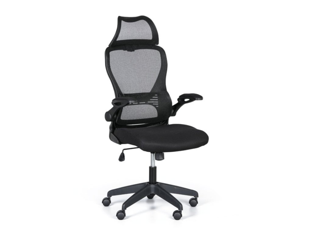Odklápěcí loketní opěrky Vám nabízí možnost jejich sklopení, kdykoliv zrovna potřebujete, díky čemuž židli zasunete například pod menší psací či pracovní stůl.