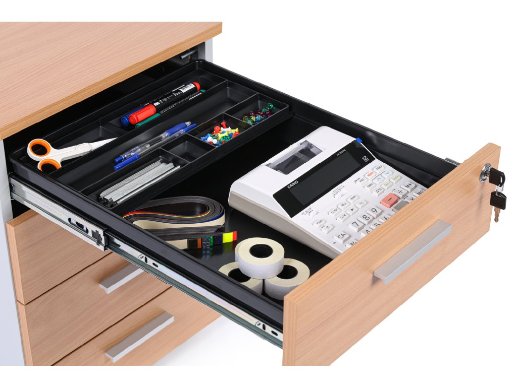 Pokud potřebujete bezpečně uschovat důležité pracovní dokumenty, oceníte centrální zamykání u všech kontejnerů. V balení jsou i 2 klíče.