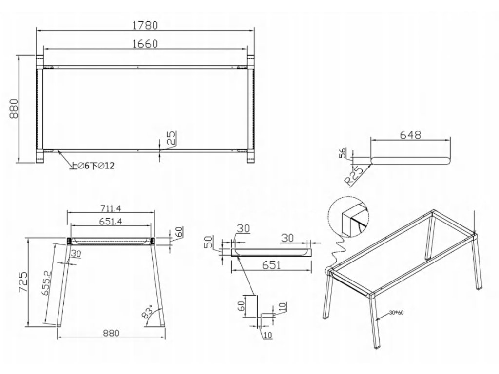 - praktické řešení podnože stolu, velmi stabilní, vyrobeno z kovových profilů