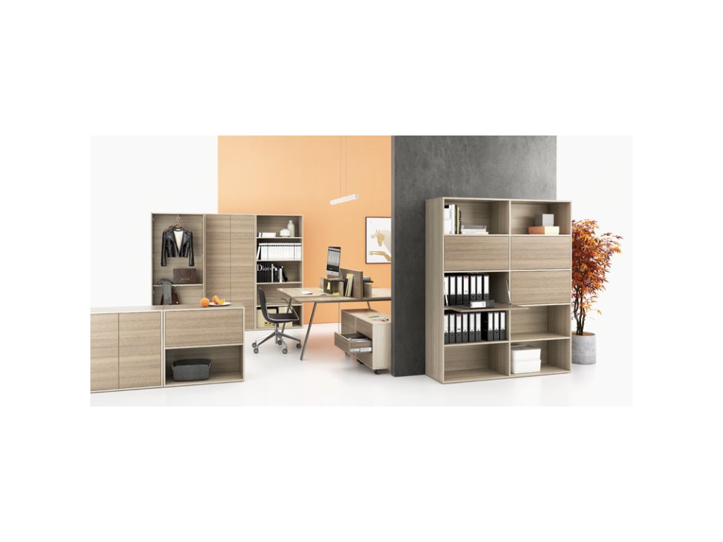 Větší množství dokumentů, šanonů, knihy či jiné předměty, které v současnosti nevyužíváte můžete uložit také do nových kancelářských komod, policových skříní s dveřmi či vysokých i nízkých regálů, které jsme doplnili také o praktické boxy. Naše nabídka se také rozrostla o nové velké knihovny i šatní skříně pro uložení kabátů, které můžete vybírat ve variantě se šatní tyčí nebo výsuvem.