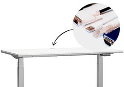 Při vývoji řady LAYERS bylo myšleno i na estetickou stránku úschovy kabelů směrem od monitoru, myšky či klávesnice až k počítači pod pracovní deskou. U stolu single bez přepážek proto naleznete v prostřední horní části rovněž i průchodku v šedé barvě pro lehký svod kabelů mimo pracovní desku.