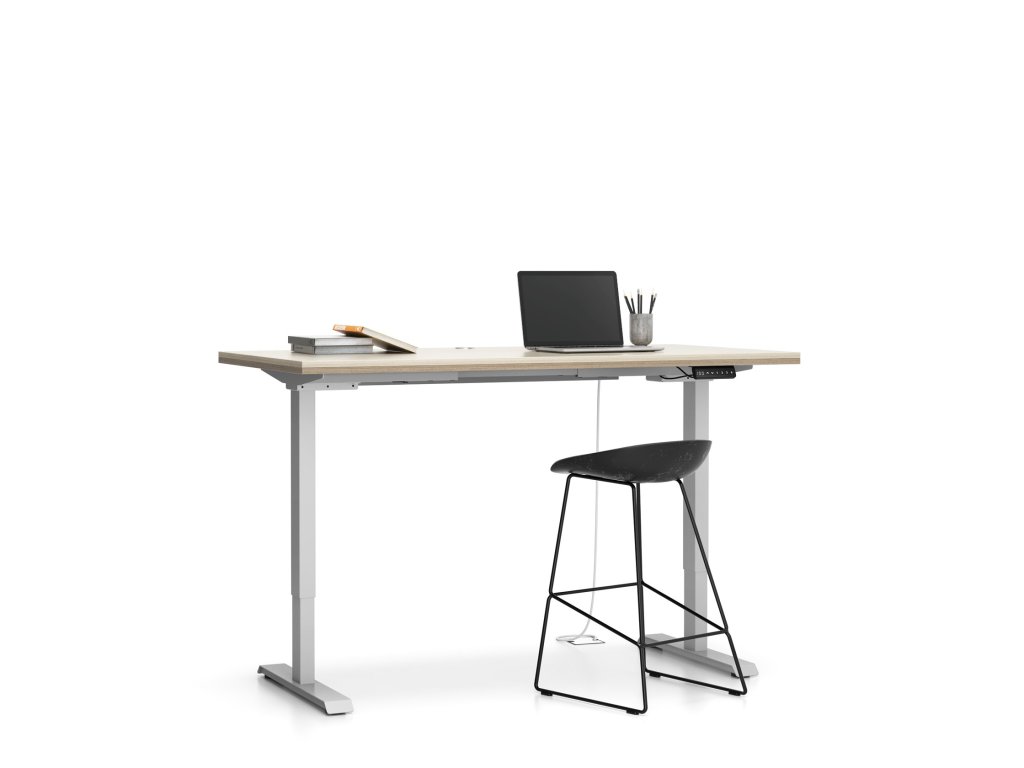 Výškově nastavitelný stůl SINGLE LAYERS, 160x80 cm, 2 motory, dub přírodní/dub mořený