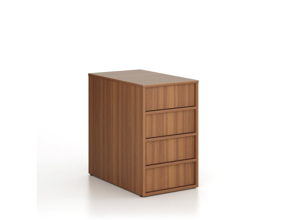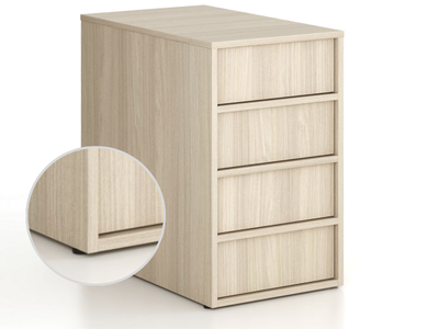 Kontejner je vyroben z laminované dřevotřísky o síle 18 mm s ABS hranou 1 mm v barvě dezénu. Pevná konstrukce a precizní zpracování zajišťují vysokou odolnost i dlouhou životnost při každodenním používání. Díky rektifikačním nožkám lze snadno dorovnat nerovnosti podlahy až do 10 mm.