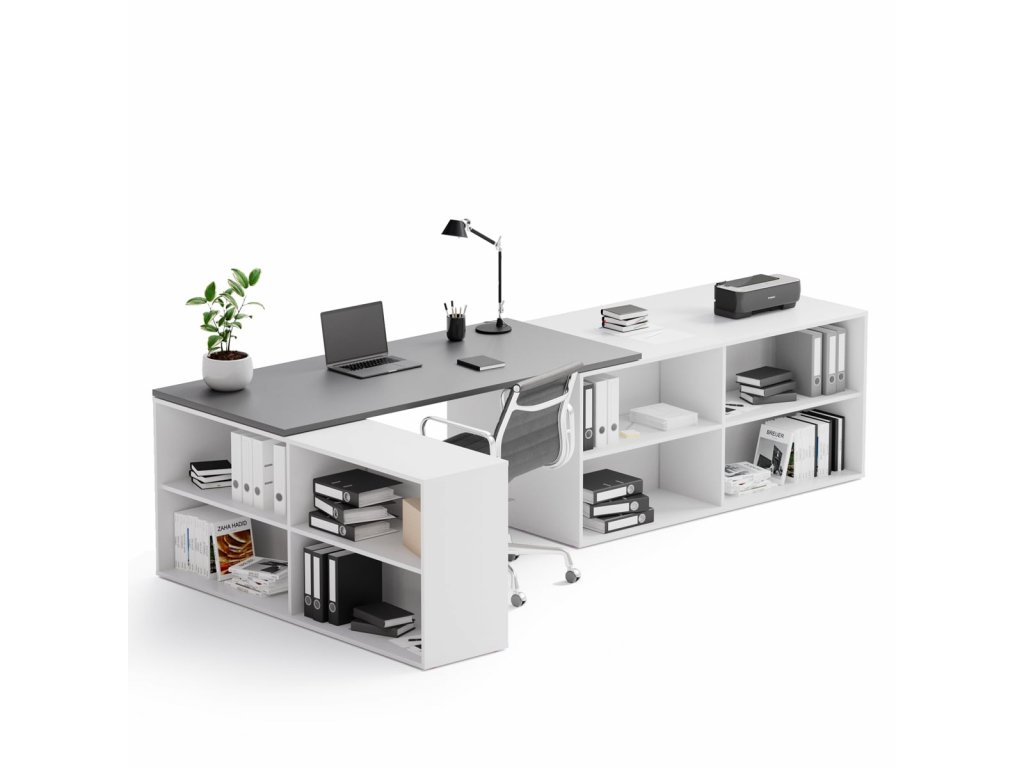 Kancelářský psací stůl s úložným prostorem BLOCK B02, bílá/grafit