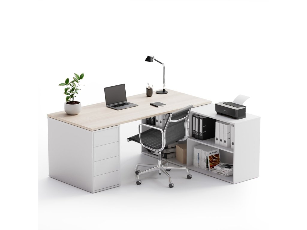 Kancelářský psací stůl s úložným prostorem BLOCK B04, bílá/dub přírodní