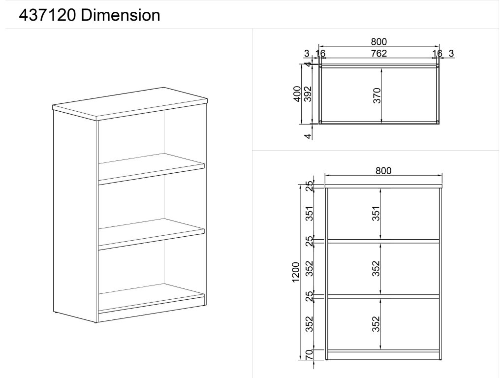 - horní půda i police jsou vyrobeny z laminované dřevotřísky o tloušťce 25 mm, korpus z lamina o tloušťce 16 mm