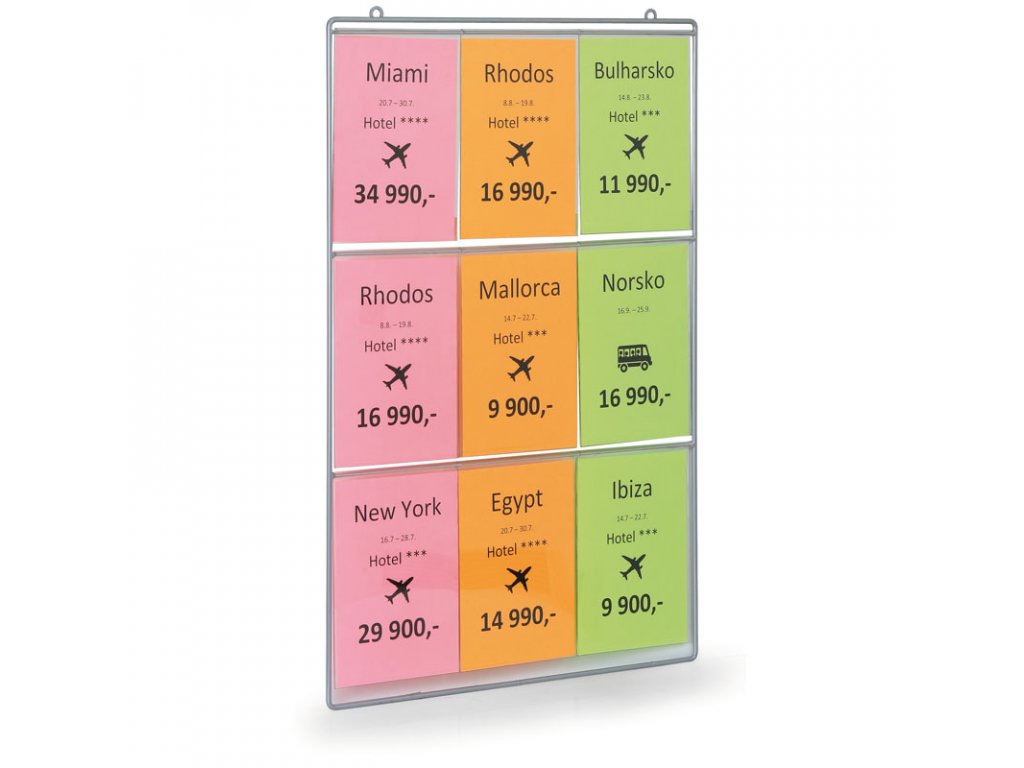 - kovový rám s průhlednými plastovými kapsami na letáky