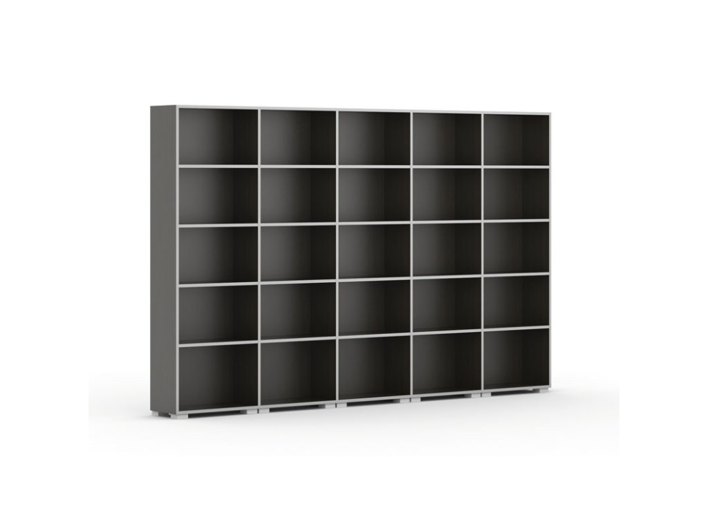 Knihovna SILVER LINE, wenge, 5 sloupců, 1865 x 3000 x 400 mm