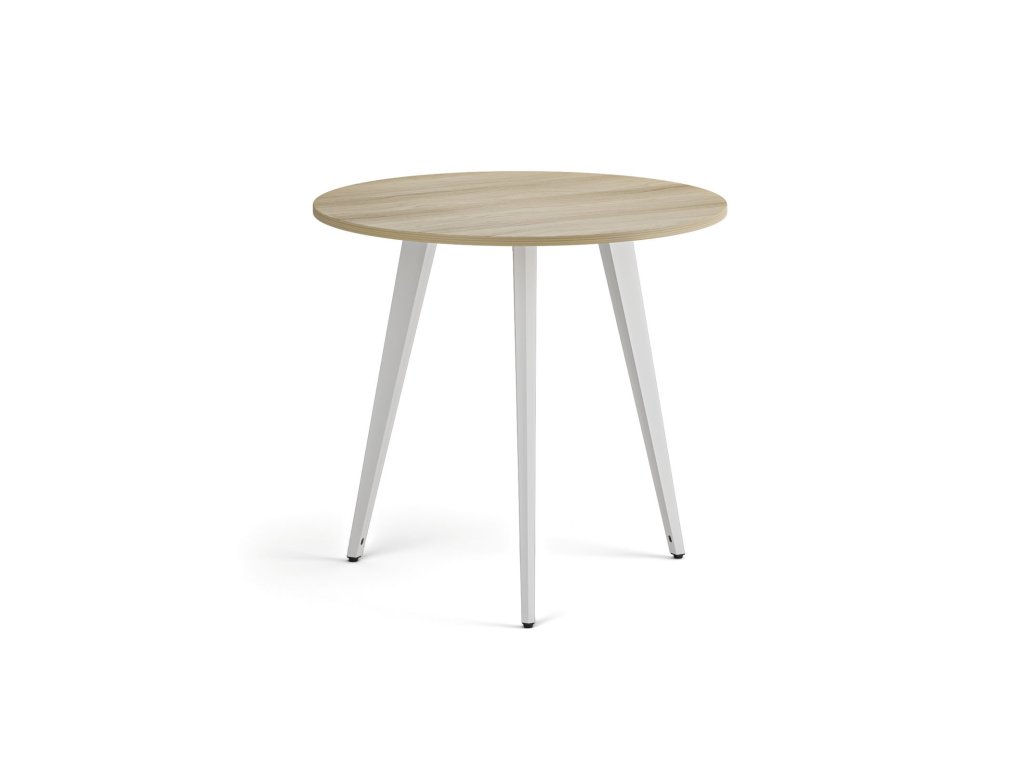 Konferenční stůl PRIMO VIBE, průměr 80 cm, bílá podnož, dub přírodní