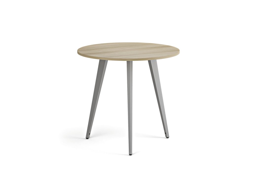 Konferenční stůl PRIMO VIBE, průměr 80 cm, šedostříbrná podnož, dub přírodní